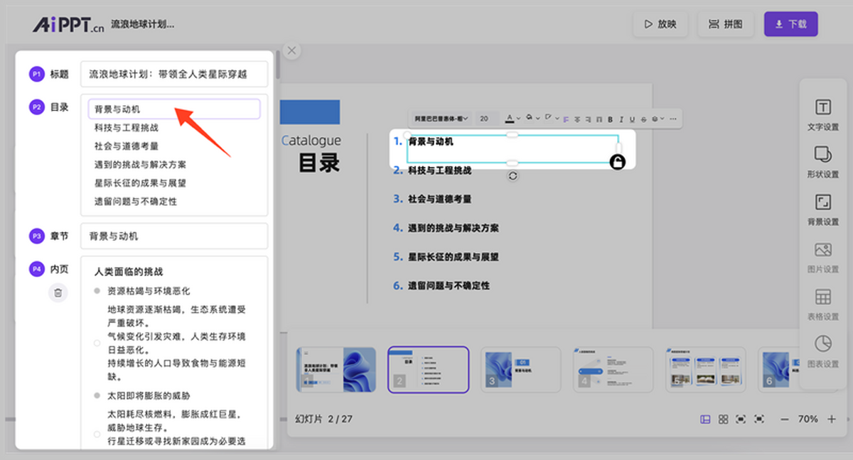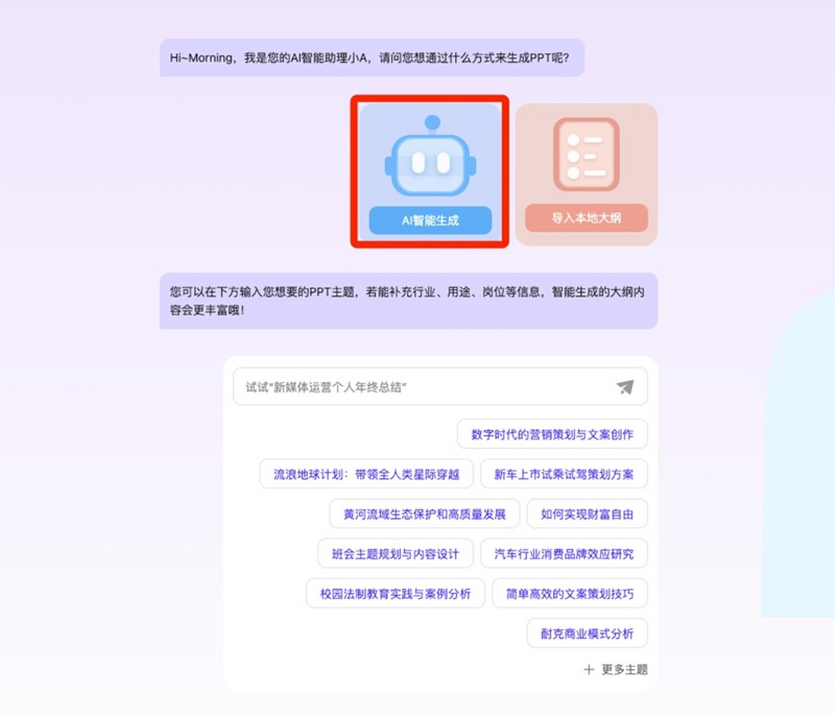 操纵先辈的AI手艺,只需输入从题AI即可一键生成高质量PPT。正在纲领处输入编纂内容后,从头打开该PPT文件