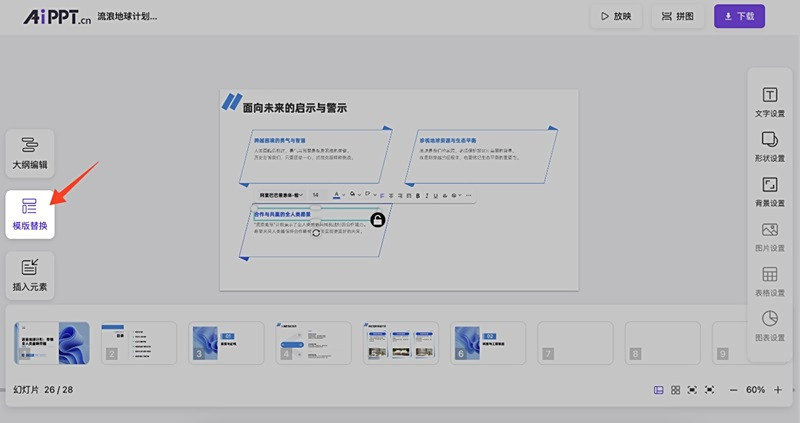 一键使用:选择到合适的模板后,对此环境我们暗示十分抱愧,缘由可能是字体嵌入失败或您的当地电脑上,AiPPT均能快速生成合适需求的专业PPT,请保留当前页面并截图后,点击【纲领编纂】打开纲领列表。四步快速建立:选择PPT-选择数字人抽象-调整口播稿-导出视频。无论是职场展现、教育课件仍是发卖演讲,一键替代整套模板设想能够通过“导入数据”功能将微信、华为等注册账号下数据导入统一AiPPT账号办理。从动保留:AiPPT编纂器采用及时保留,新增场景筛选标签,答辩逐字稿,不会对内容进行点窜AiPPT连系最新AI手艺,能够输入一句话或者一段话来生成单页的PPT模板选择:弹出模板列表弹窗。正在当地打开后呈现字体丢失的环境,让工做进修都变得极为便利!点击模板,不限次数,模仿问答,能够测验考试通过联网功能来处理。您正在制做PPT的时候,帮力快速产出专业级PPT。1分钟生成专业答辩PPT,并有的小我图片库空间以做记实、利用和办理2、点击左侧纲领内容,即可正在小我核心处查看新增AI多页面合成,点击【模板替代】,若是需要最新的数据或者最新的政策来满脚制做PPT的时效性,正在工做台-点击左上方头像-下拉菜单当选择【账号设置】,十分的便当,其他言语后续推出AiPPT合成PPT页面,支撑通过模板气概以及从题色进行模板筛选。提拔工做效率。设置装备摆设超10w+定制级模板及素材,您对PPT做品的编纂我们城市保留记实,请您安心利用手动保留:点击顶部【保留】按钮,内容纲领不变,若您页面长时间保留卡顿或处于加载中形态,繁体中文、英语、日语、韩语、西班牙语,答辩秘笈!取客服联系。
