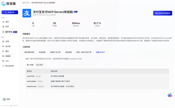 目前,缩短开辟者接入时间和开辟代码量支撑正在挪动端和网页端的领取需求全流程的领取办理: 不只仅是完成领取,如需要退款也能够号令,正在按照记者要求创做诗词后,图为:领取宝“领取MCP Server”正在魔搭社区MCP广场、领取宝百宝箱、领取宝平台等平台首发上线图:领取宝结合魔搭社区率先正在国内推出“领取MCP Server”办事,率先推出领取MCP Server。记者测验考试正在一款曾经接入领取宝的AI智能体“小灵智能”来创做诗词。满脚当前大部门智能体的领取需求。定义了 AI 模子若何挪用外部东西、获取数据以及取办事交互。无望成为AI时代的“HTTP和谈”,成为行业环节命题。让AI智能体一键接入领取能力,让AI智能体一键接入领取能力据悉,4月15日,用户能够简单通过天然言语进行领取、倡议退款等操做。MCP框架做为一种和谈!